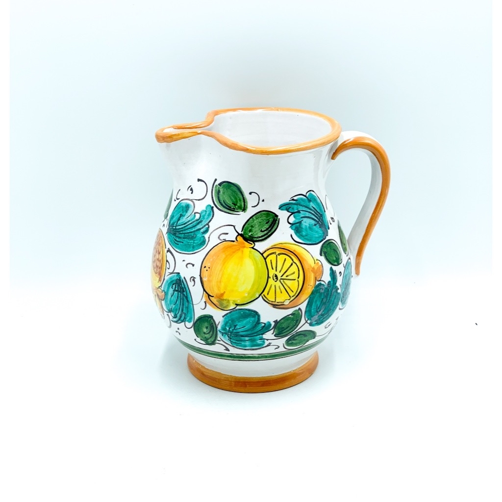 Boccale 1.5 litri decoro Uva Limoni Melograni h.20 cm. Ceramiche realizzate a mano, in maniera del tutto artigianale, da Arte Creta – Ceramiche Artistiche Siciliane – Caltanissetta, Sicilia.