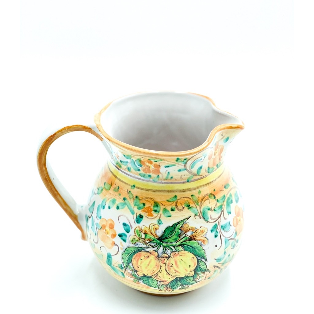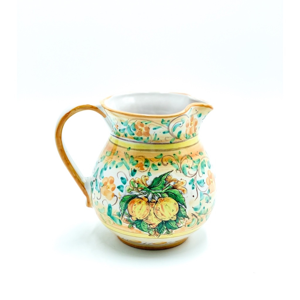 Boccale 1 litro Decoro 3 Limoni h.16 cm. Ceramiche realizzate a mano, in maniera del tutto artigianale, da Arte Creta – Ceramiche Artistiche Siciliane – Caltanissetta, Sicilia.