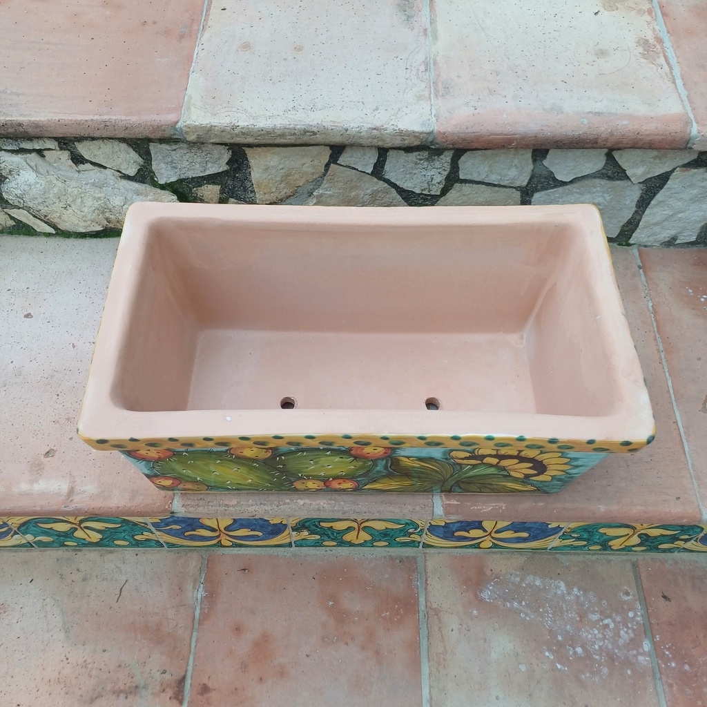 cassetta porta vaso rettangolare decoro fichi d’india e girasoli cm.42×23 h.20cm
