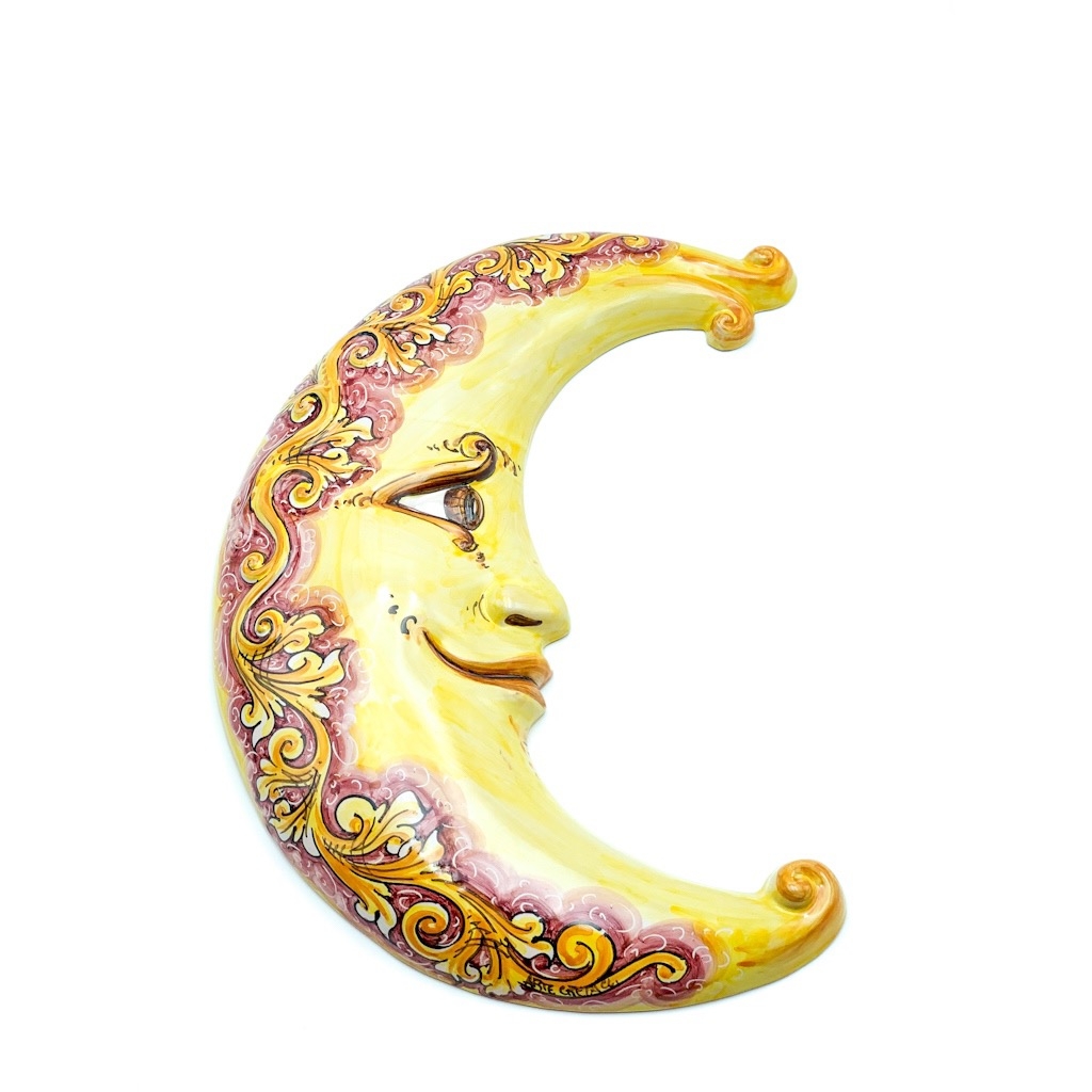 Luna in Ceramica decoro rosso cm.45. Ceramiche realizzate a mano, in maniera del tutto artigianale, da Arte Creta – Ceramiche Artistiche Siciliane – Caltanissetta, Sicilia.