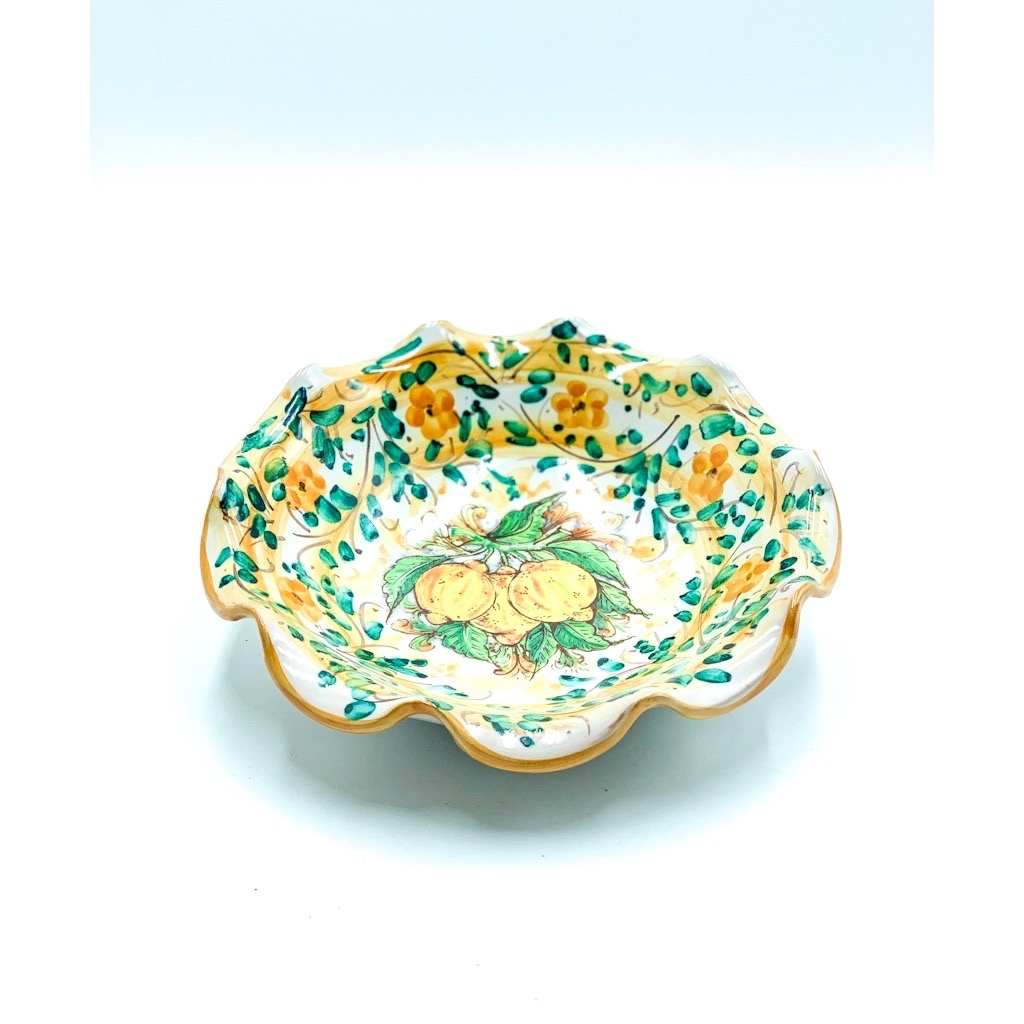 Ciotola Smerlata Decoro 3 Limoni ø22 h.7 cm. Ceramiche realizzate a mano, in maniera del tutto artigianale, da Arte Creta – Ceramiche Artistiche Siciliane – Caltanissetta, Sicilia.