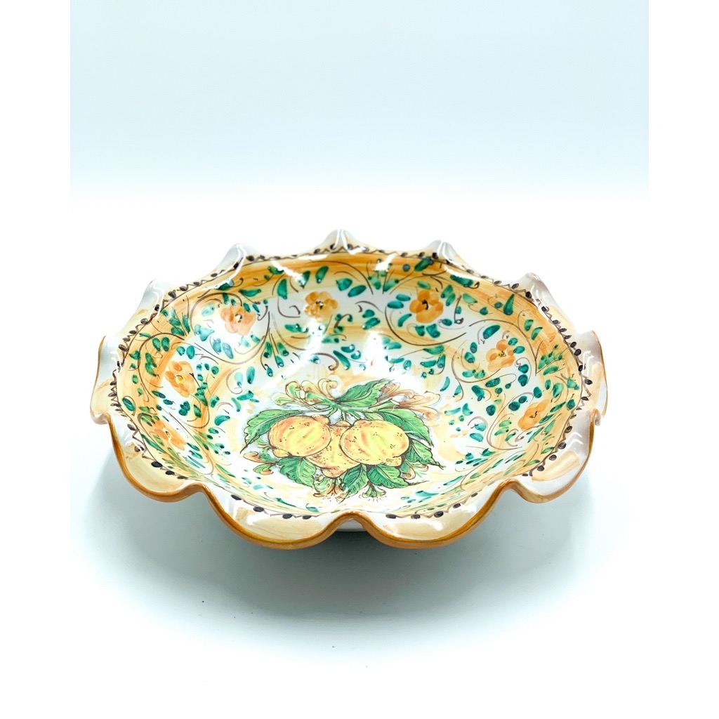 Ciotola Smerlata Decoro 3 Limoni ø30 h.9 cm. Ceramiche realizzate a mano, in maniera del tutto artigianale, da Arte Creta – Ceramiche Artistiche Siciliane – Caltanissetta, Sicilia.