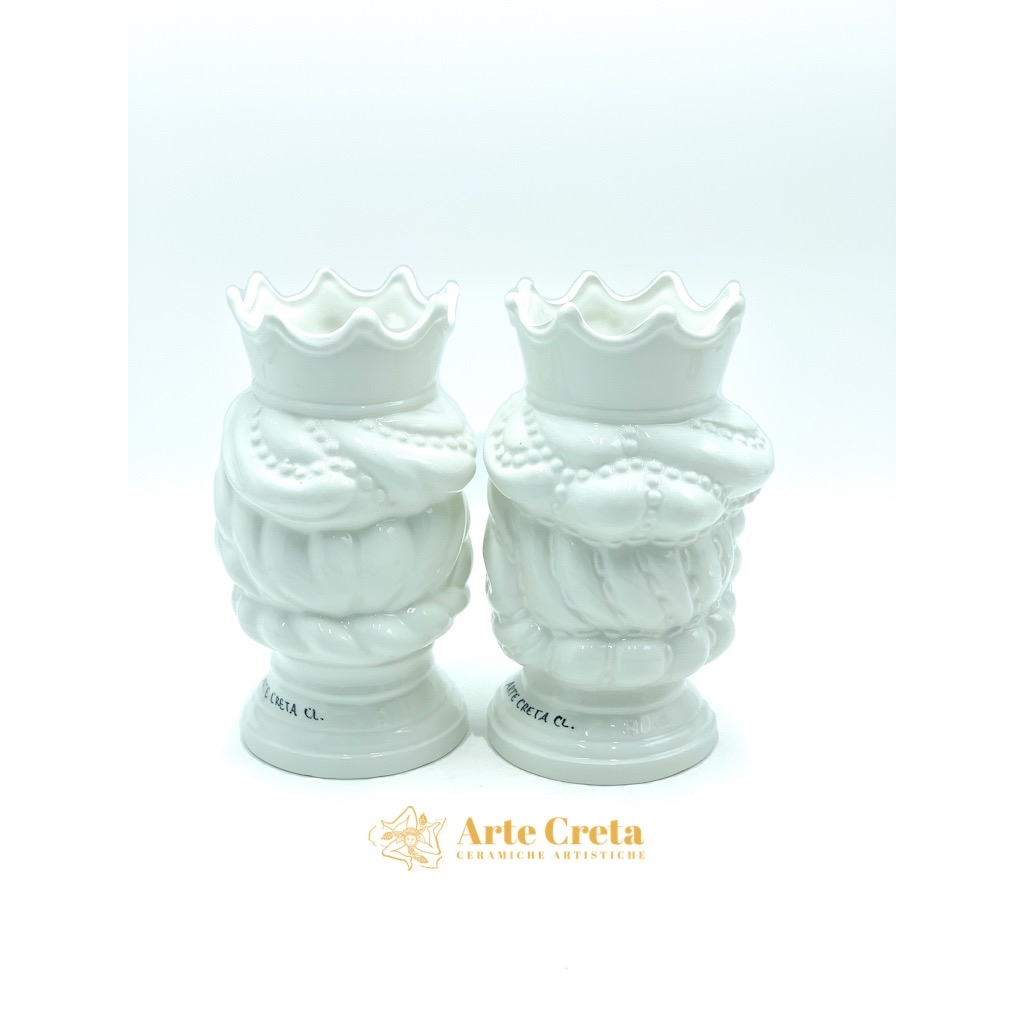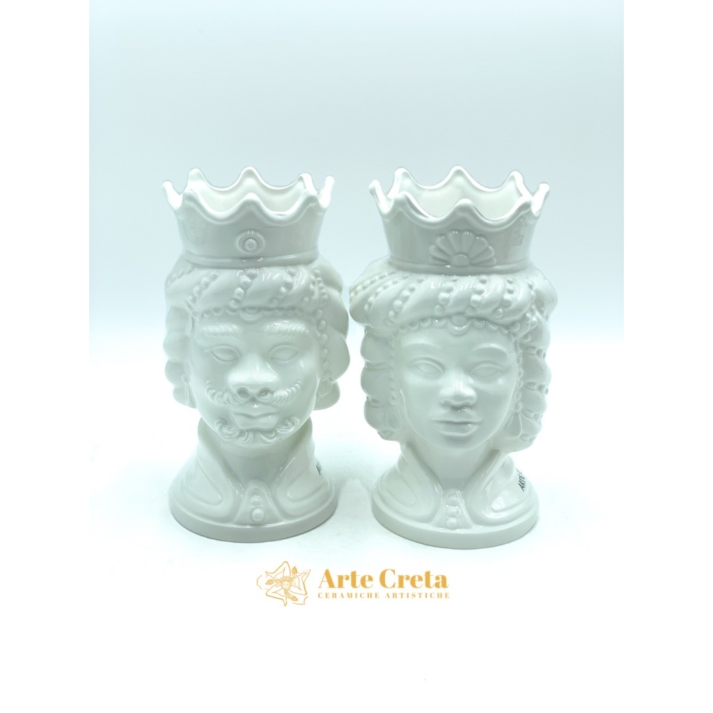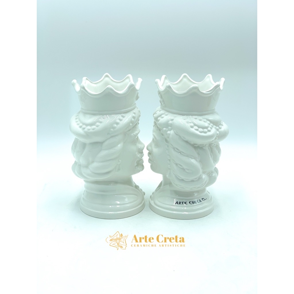 Coppia Testa di Moro Abu Dhabi Bianco cm.20. Ceramiche realizzate a mano, in maniera del tutto artigianale, da Arte Creta – Ceramiche Artistiche Siciliane – Caltanissetta, Sicilia.