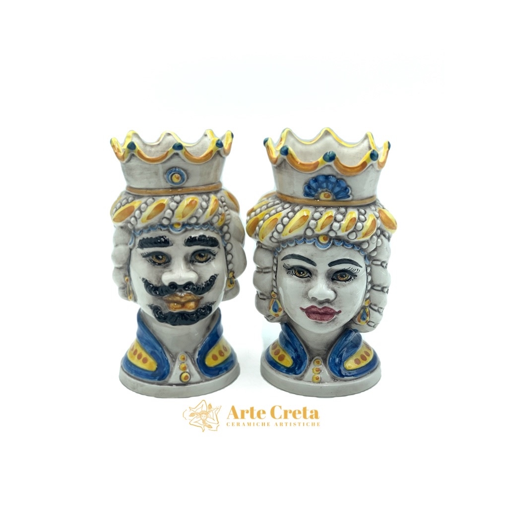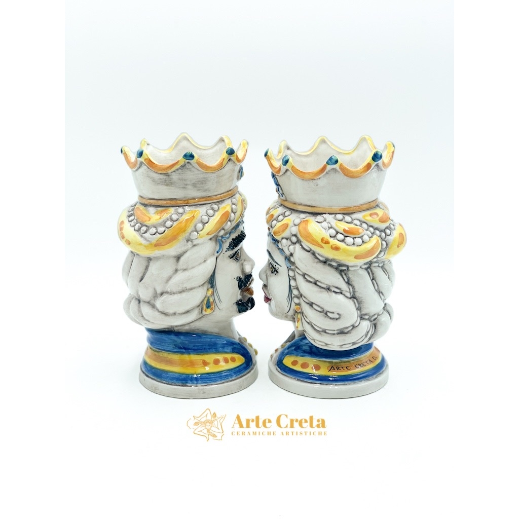 Coppia Testa di Moro Abu Dhabi Fumè Blu cm.20. Ceramiche realizzate a mano, in maniera del tutto artigianale, da Arte Creta – Ceramiche Artistiche Siciliane – Caltanissetta, Sicilia.