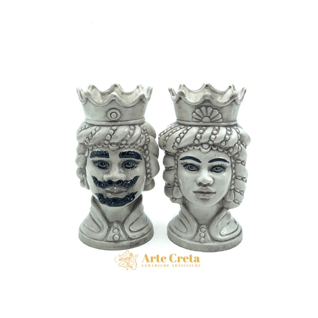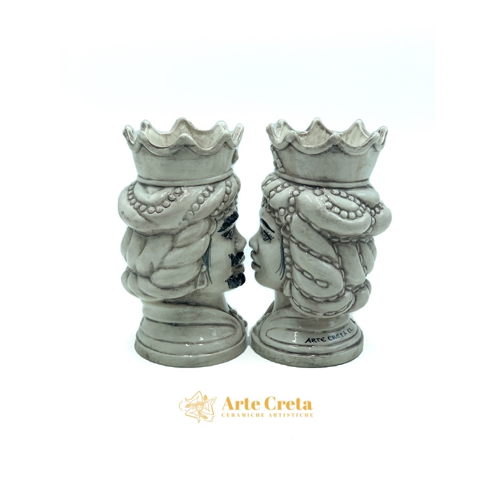 Coppia Testa di Moro Abu Dhabi Fumè cm.20. Ceramiche realizzate a mano, in maniera del tutto artigianale, da Arte Creta – Ceramiche Artistiche Siciliane – Caltanissetta, Sicilia.