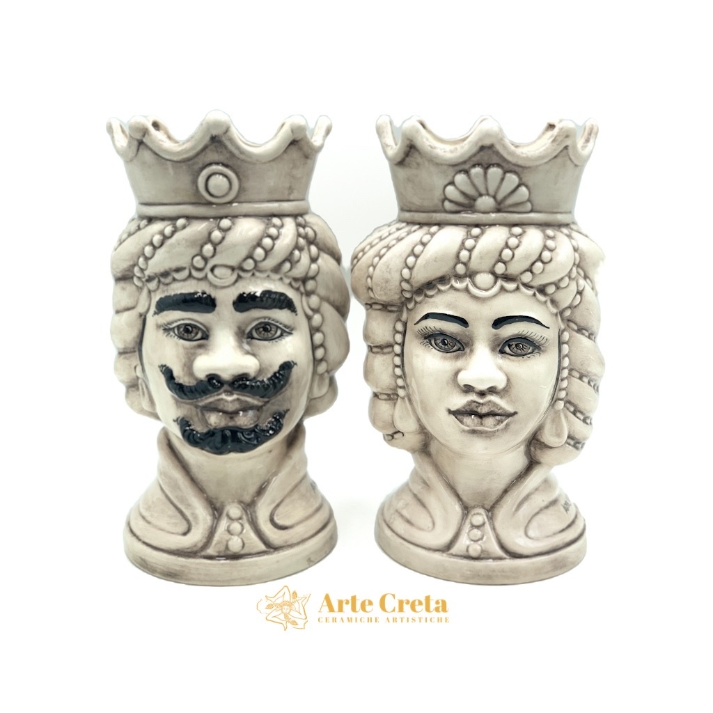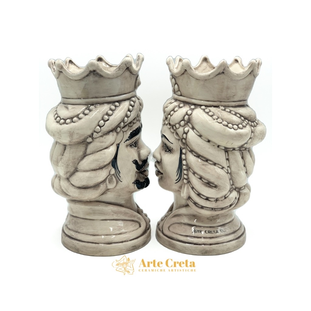 Coppia Testa di Moro Abu Dhabi Fumè cm.30. Ceramiche realizzate a mano, in maniera del tutto artigianale, da Arte Creta – Ceramiche Artistiche Siciliane – Caltanissetta, Sicilia.