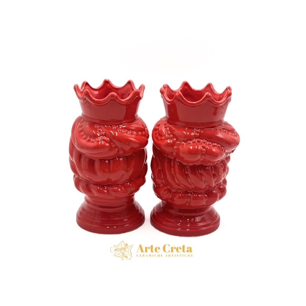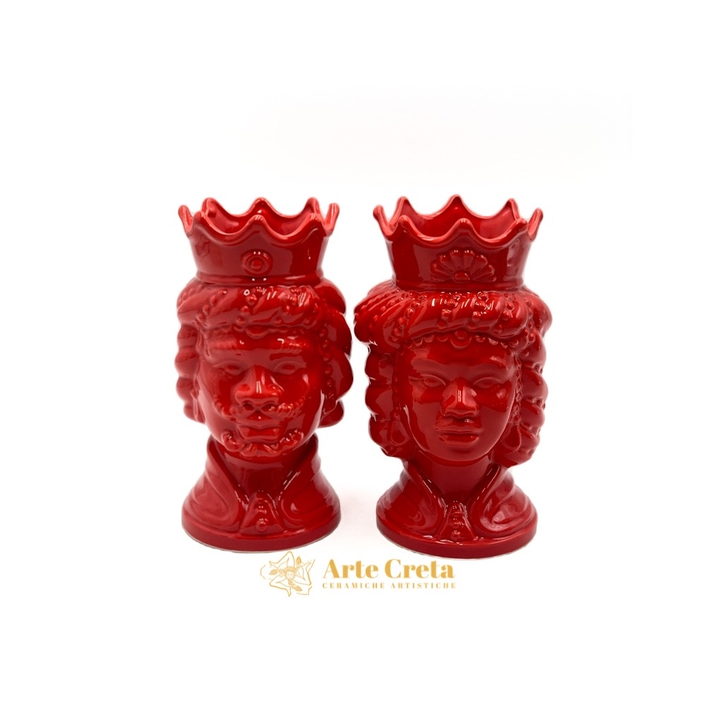 Coppia Testa di Moro Abu Dhabi Rosso cm.20. Ceramiche realizzate a mano, in maniera del tutto artigianale, da Arte Creta – Ceramiche Artistiche Siciliane – Caltanissetta, Sicilia.