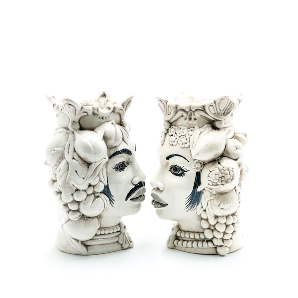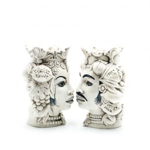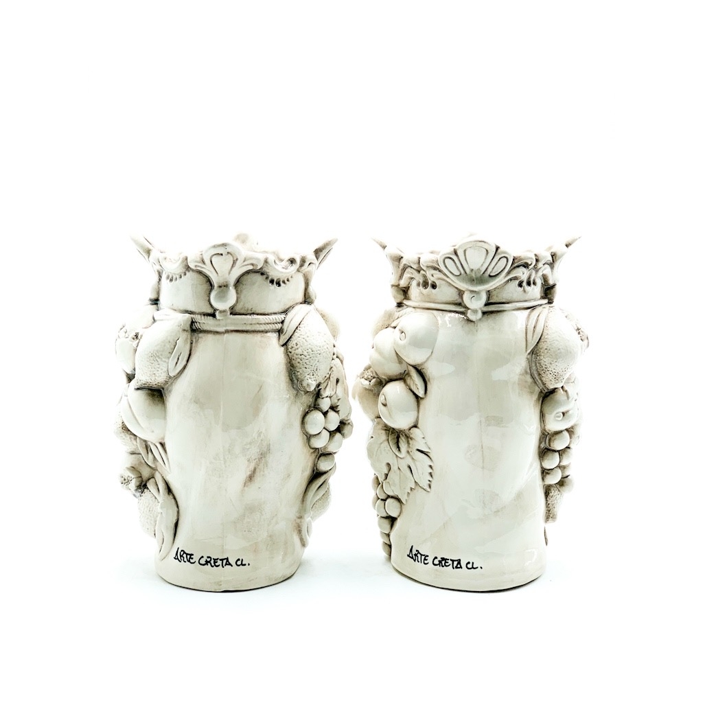 Coppia Testa di Moro Africano con frutta Fumè cm.26. Ceramiche realizzate a mano, in maniera del tutto artigianale, da Arte Creta – Ceramiche Artistiche Siciliane – Caltanissetta, Sicilia.