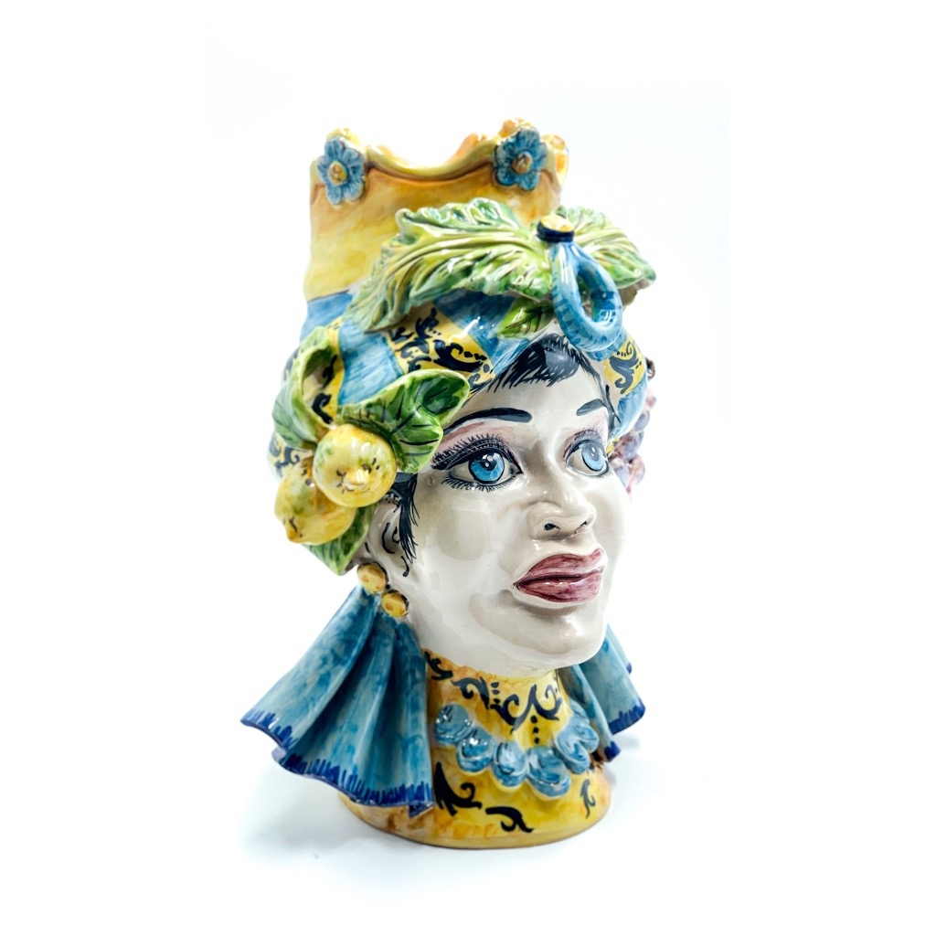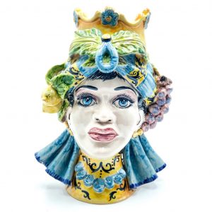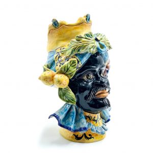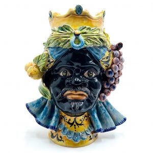 Coppia Testa di Moro Africano con uva e limoni cm.34. Ceramiche realizzate a mano, in maniera del tutto artigianale, da Arte Creta – Ceramiche Artistiche Siciliane – Caltanissetta, Sicilia.