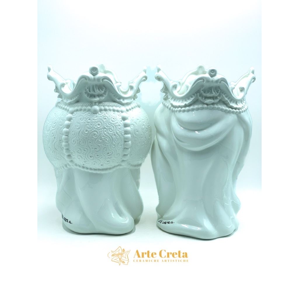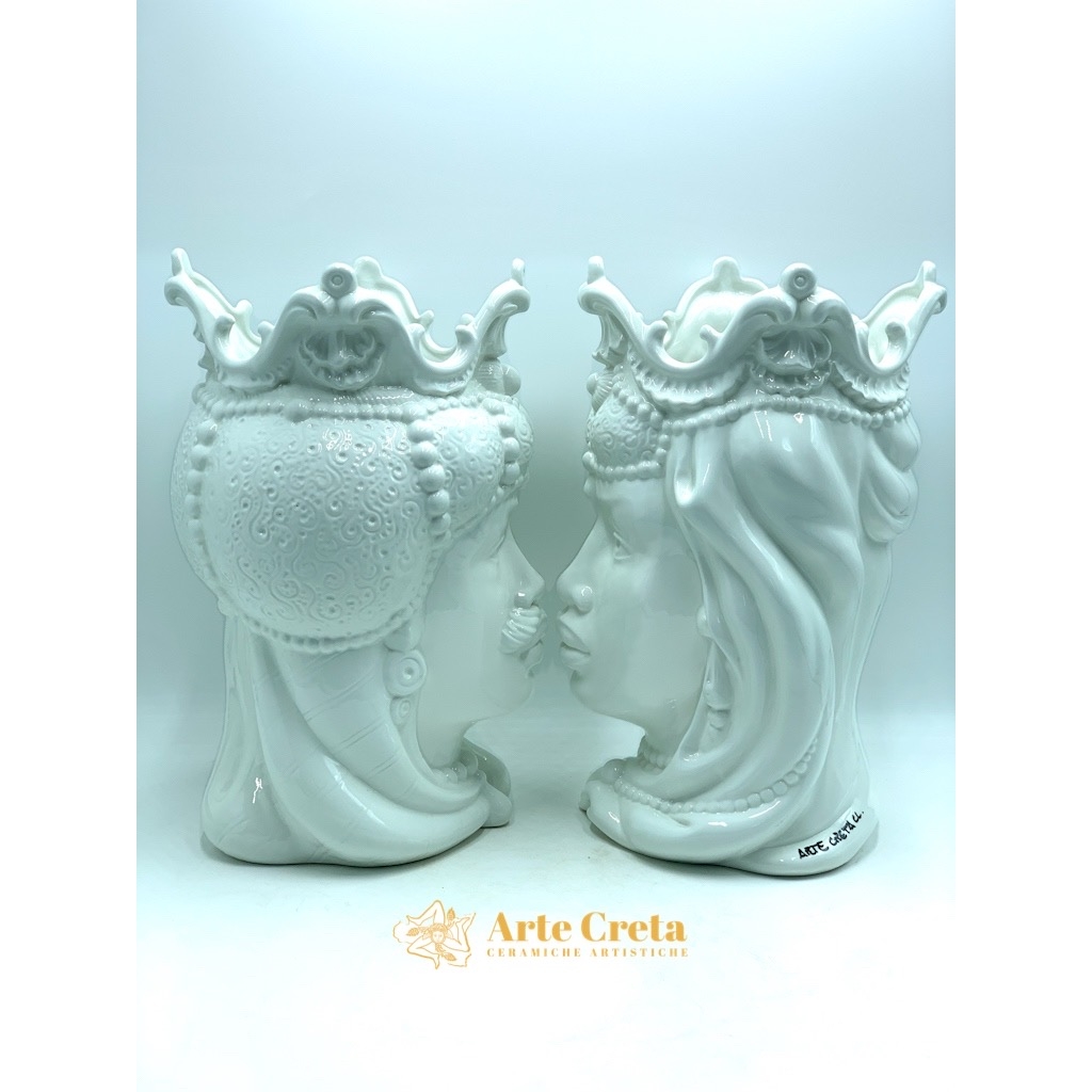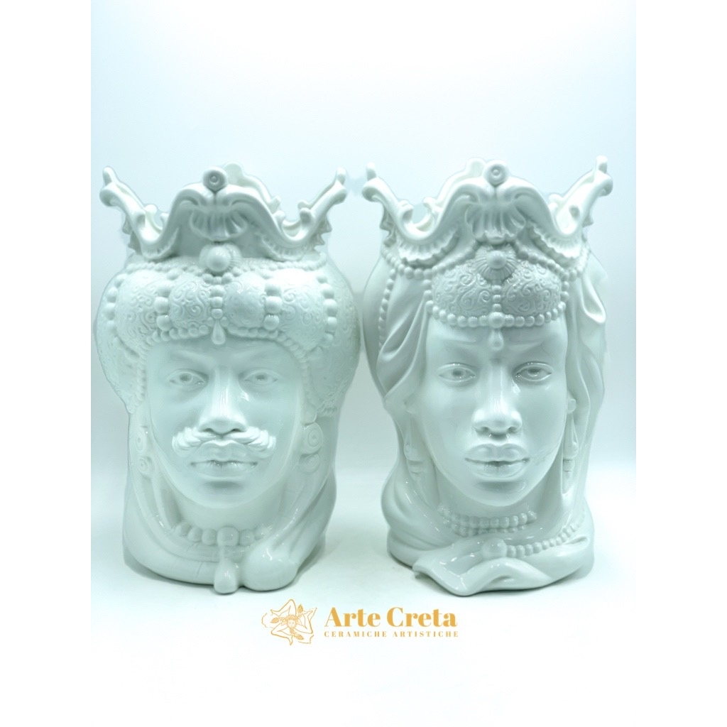 Coppia Testa di Moro Emiro Bianco cm.38. Ceramiche realizzate a mano, in maniera del tutto artigianale, da Arte Creta – Ceramiche Artistiche Siciliane – Caltanissetta, Sicilia.