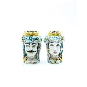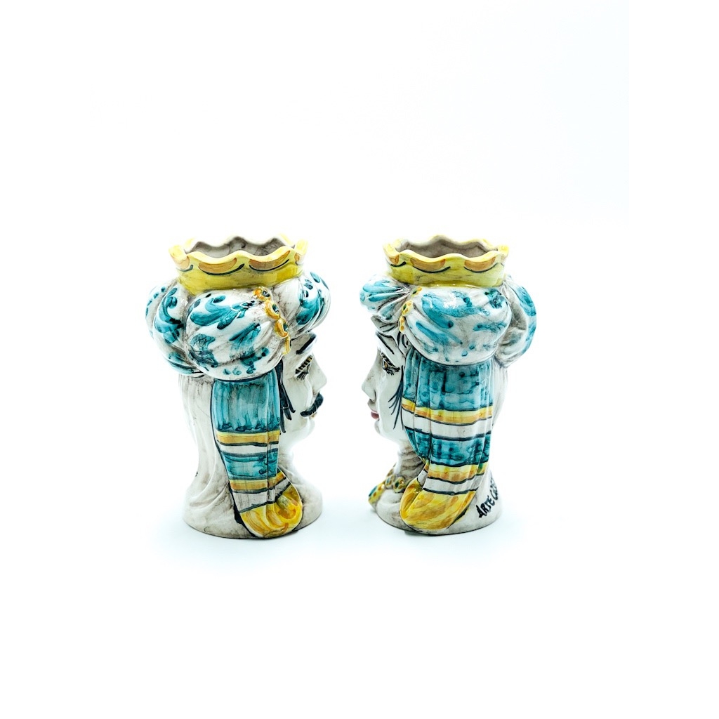 Coppia Testa di Moro floreale verde cm.17. Ceramiche realizzate a mano, in maniera del tutto artigianale, da Arte Creta – Ceramiche Artistiche Siciliane – Caltanissetta, Sicilia.