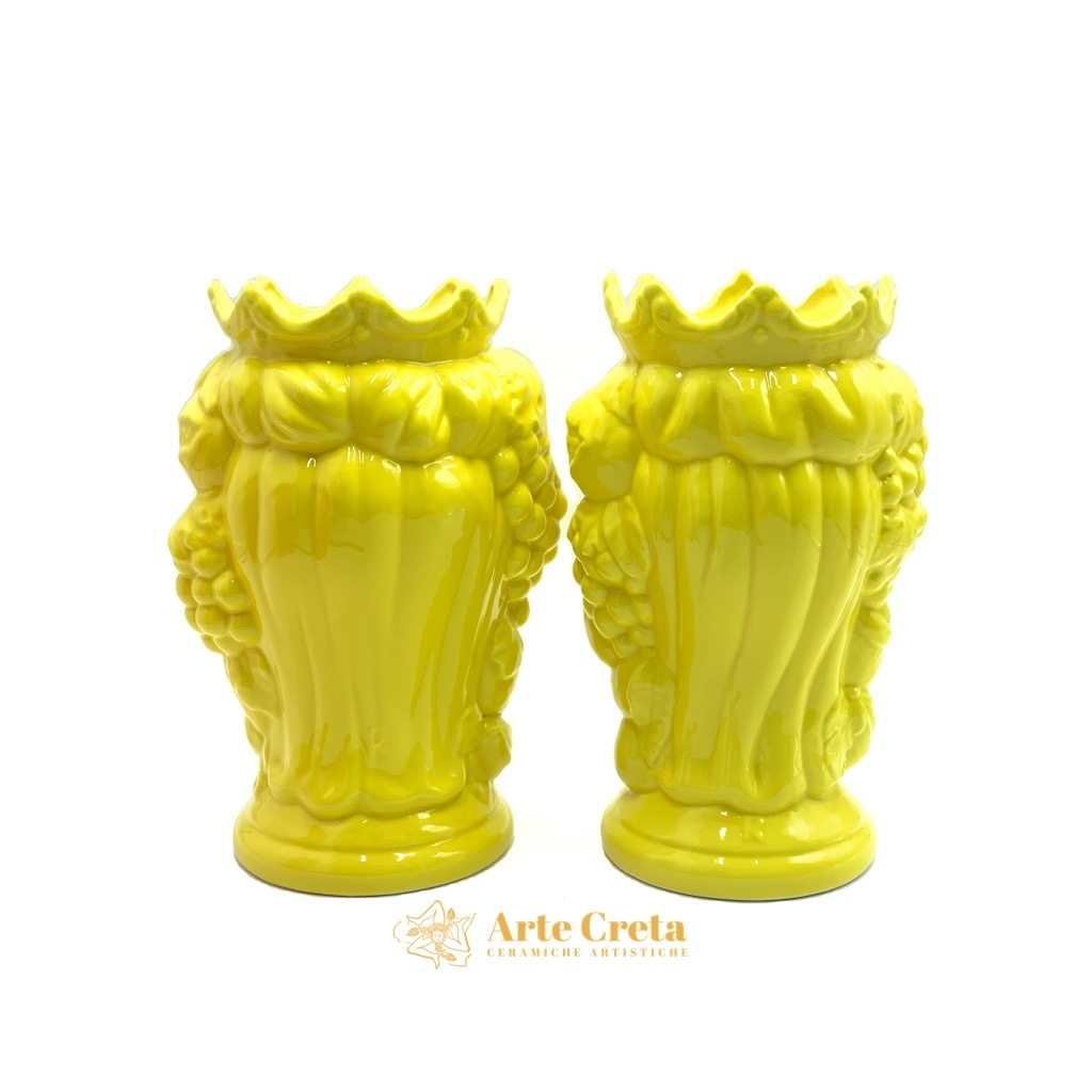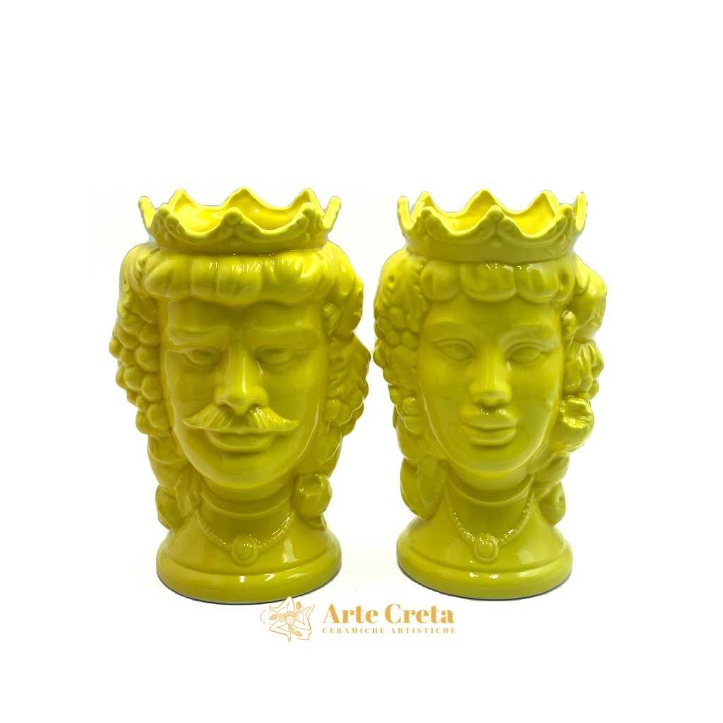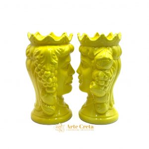 Coppia Testa di Moro Frutta Giallo cm.27. Ceramiche realizzate a mano, in maniera del tutto artigianale, da Arte Creta – Ceramiche Artistiche Siciliane – Caltanissetta, Sicilia.