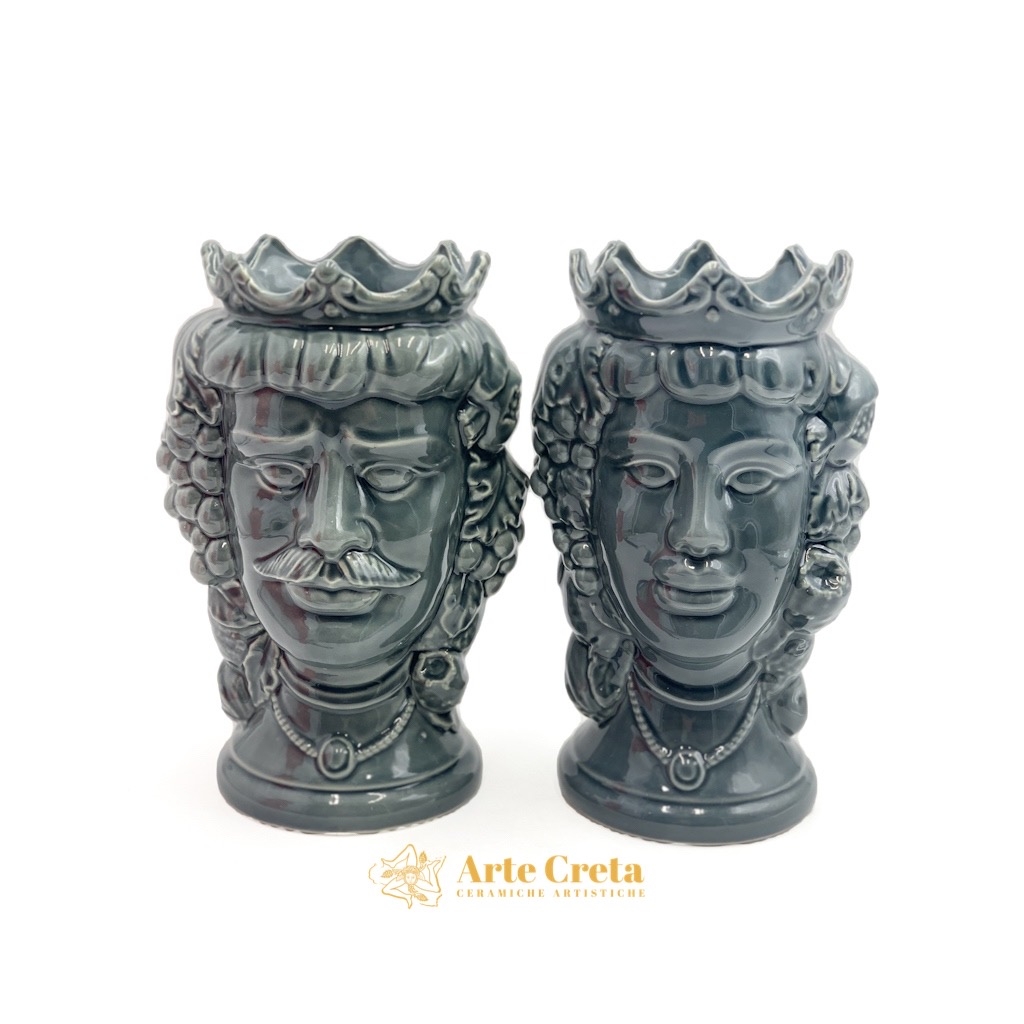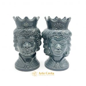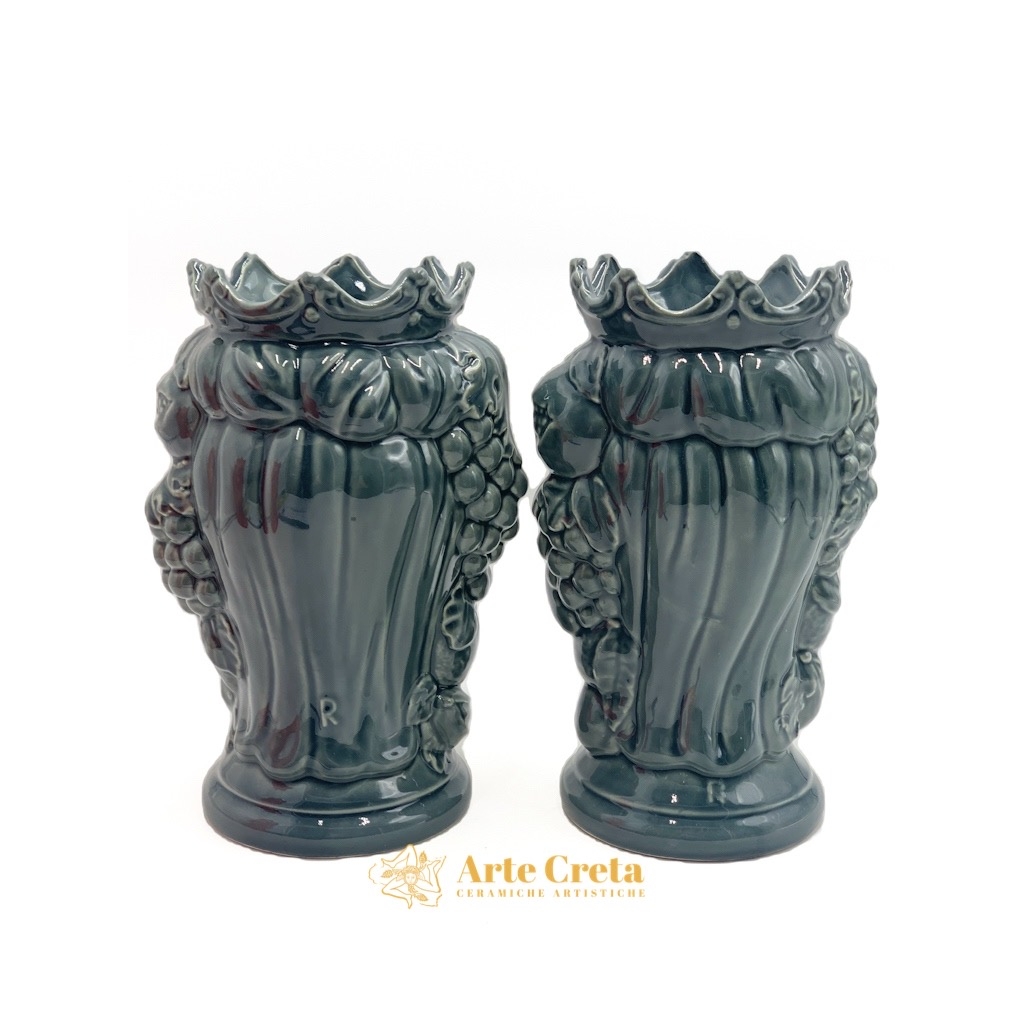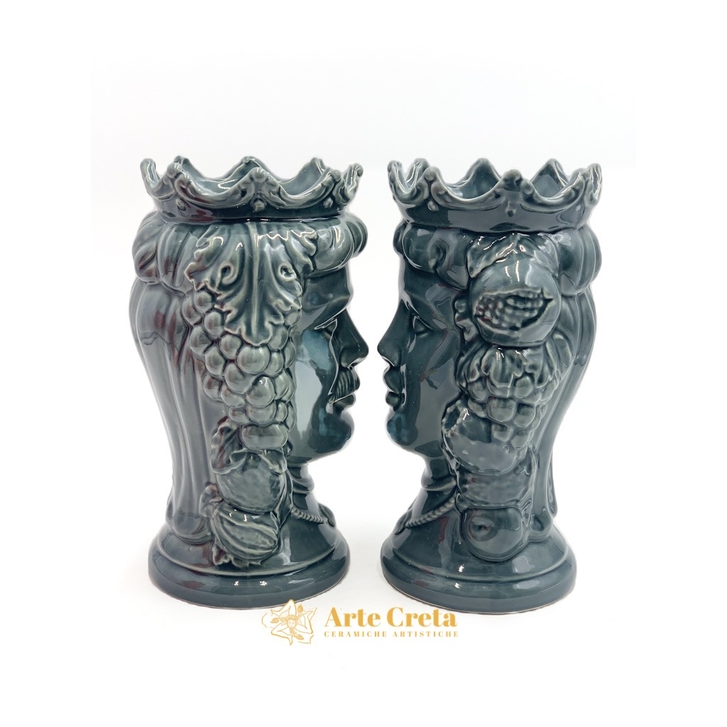 Coppia Testa di Moro Frutta Grigio cm.27. Ceramiche realizzate a mano, in maniera del tutto artigianale, da Arte Creta – Ceramiche Artistiche Siciliane – Caltanissetta, Sicilia.