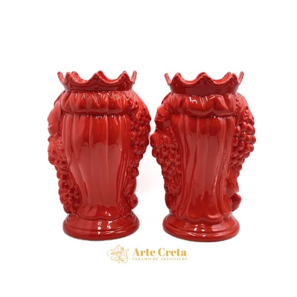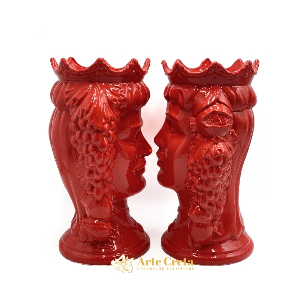 Coppia Testa di Moro Frutta Rosso cm.37. Ceramiche realizzate a mano, in maniera del tutto artigianale, da Arte Creta – Ceramiche Artistiche Siciliane – Caltanissetta, Sicilia.