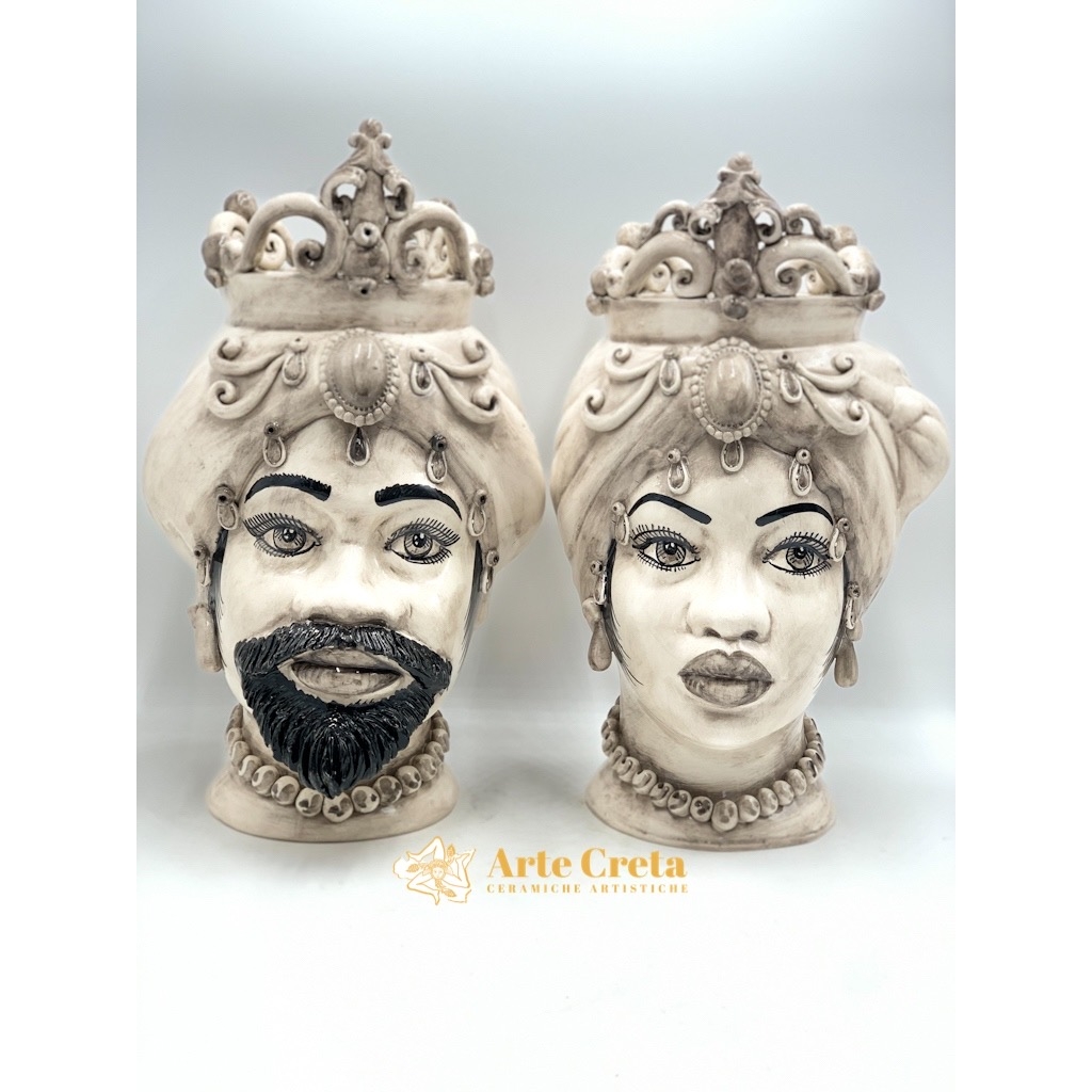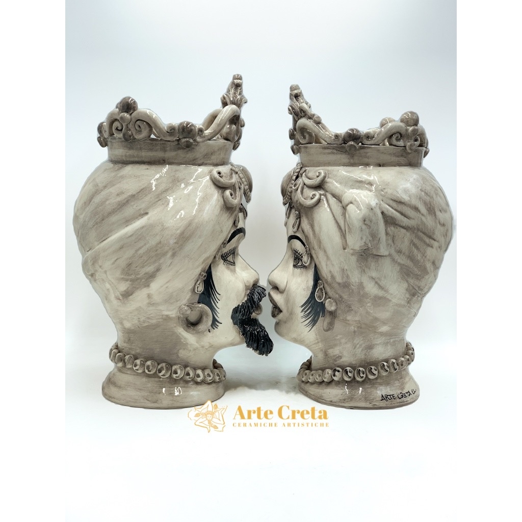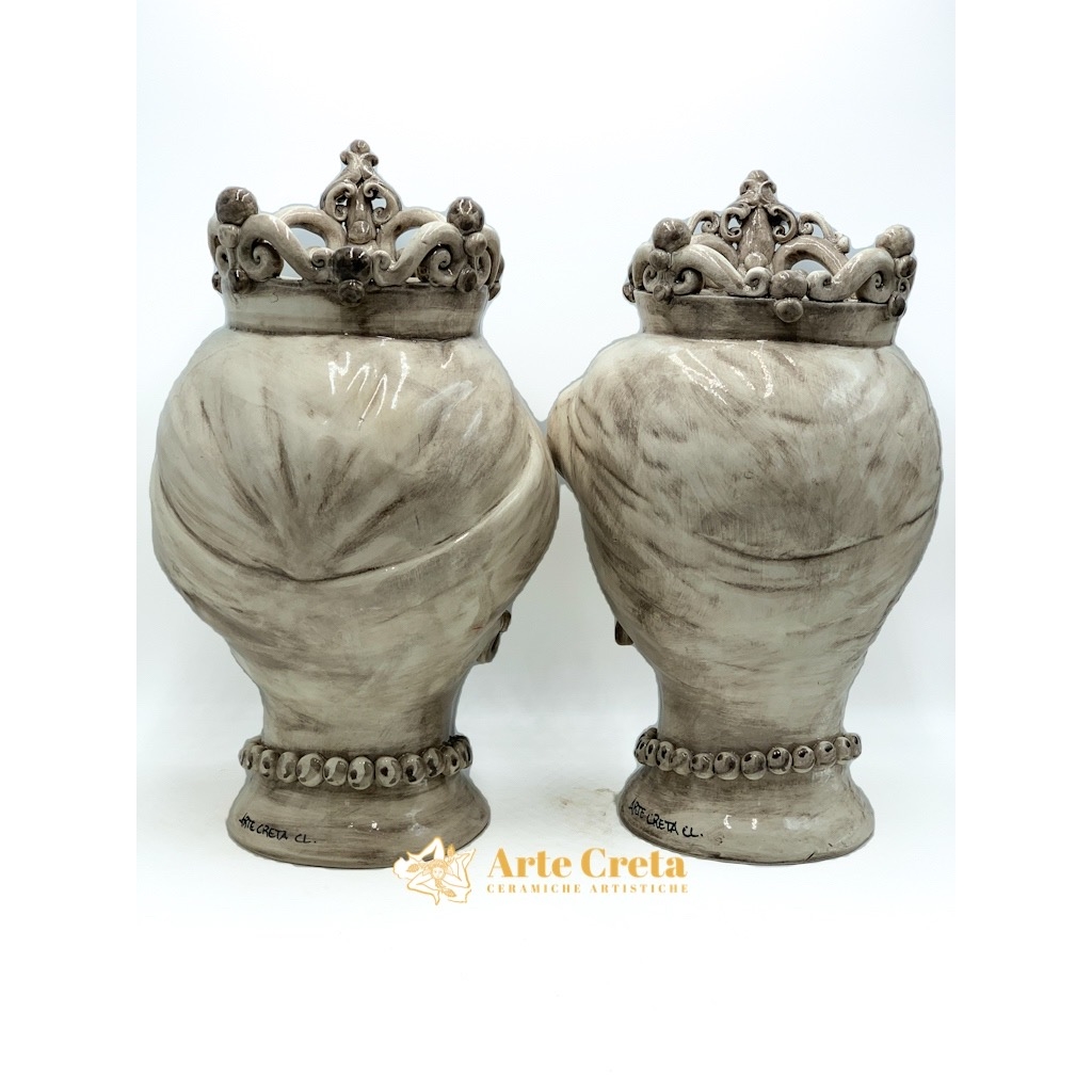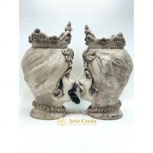 Coppia Testa di Moro Fumè c/applicazioni e Fregio cm.46. Ceramiche realizzate a mano, in maniera del tutto artigianale, da Arte Creta – Ceramiche Artistiche Siciliane – Caltanissetta, Sicilia.