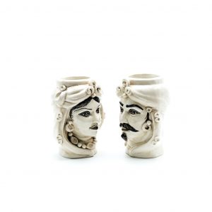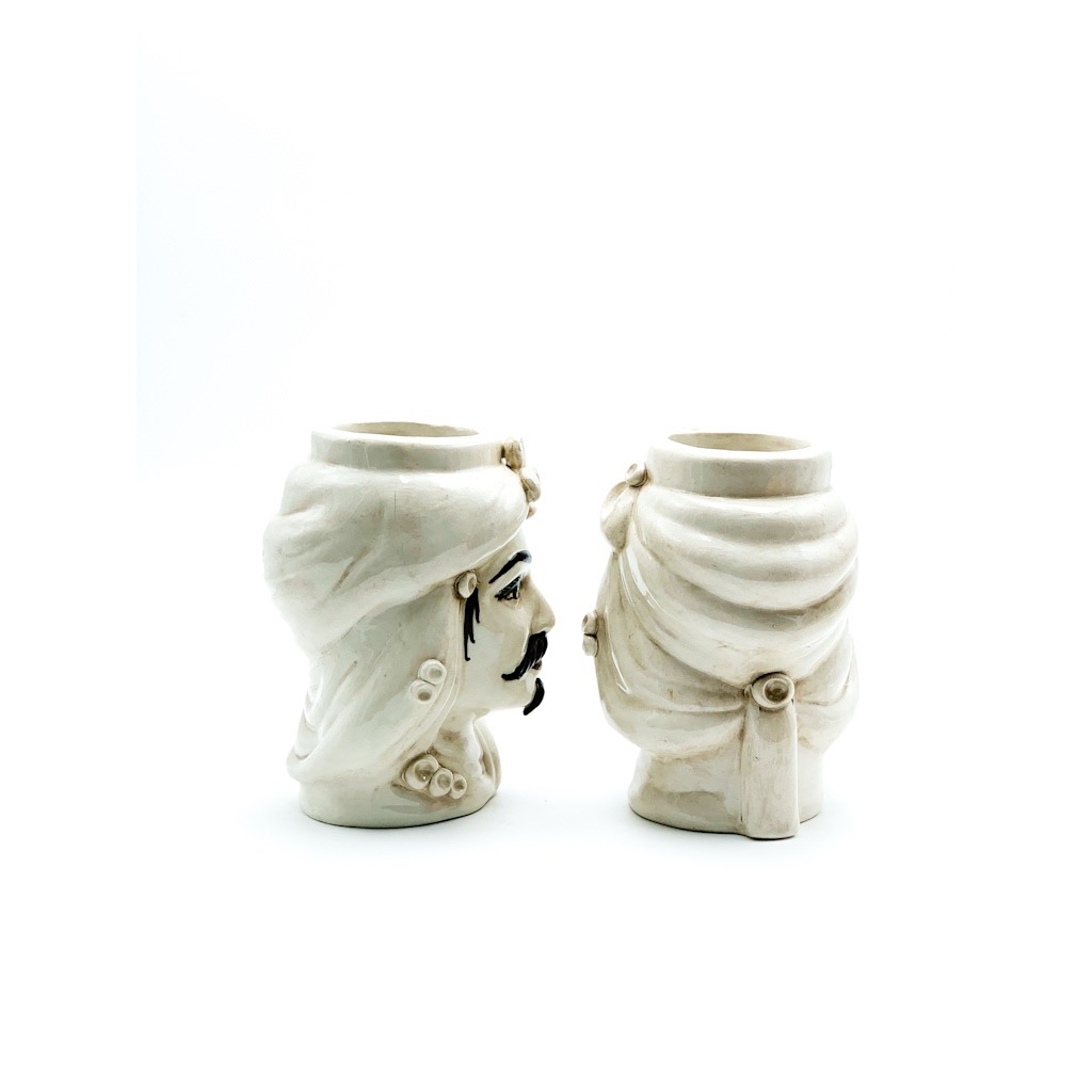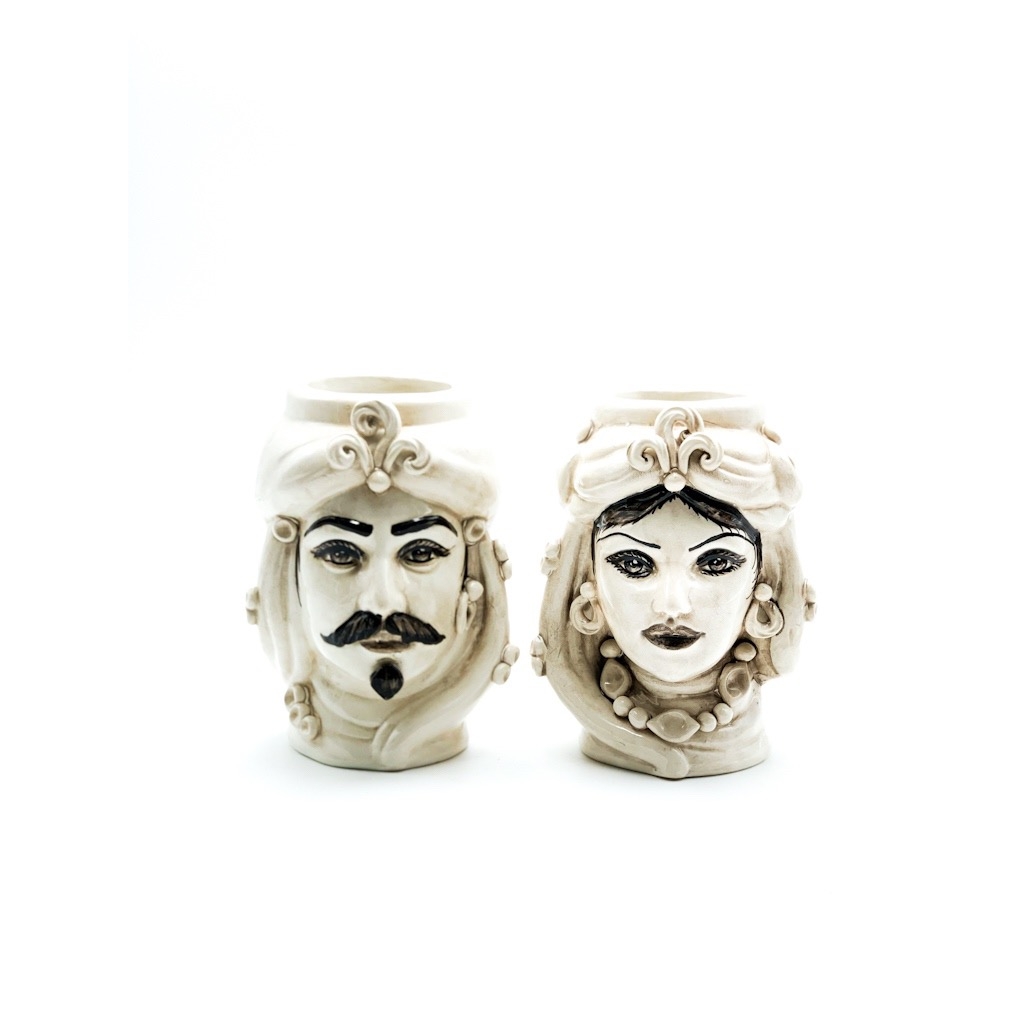 Coppia Testa di Moro fumè cm.21. Ceramiche realizzate a mano, in maniera del tutto artigianale, da Emanuele Margarone Caltagirone per Arte Creta Ceramiche Artistiche Siciliane – Caltanissetta, Sicilia.
