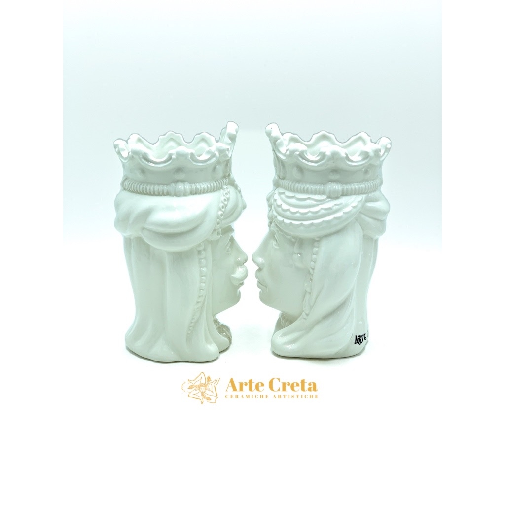 Coppia Testa di Moro Normanno Bianco cm.18. Ceramiche realizzate a mano, in maniera del tutto artigianale, da Arte Creta – Ceramiche Artistiche Siciliane – Caltanissetta, Sicilia.
