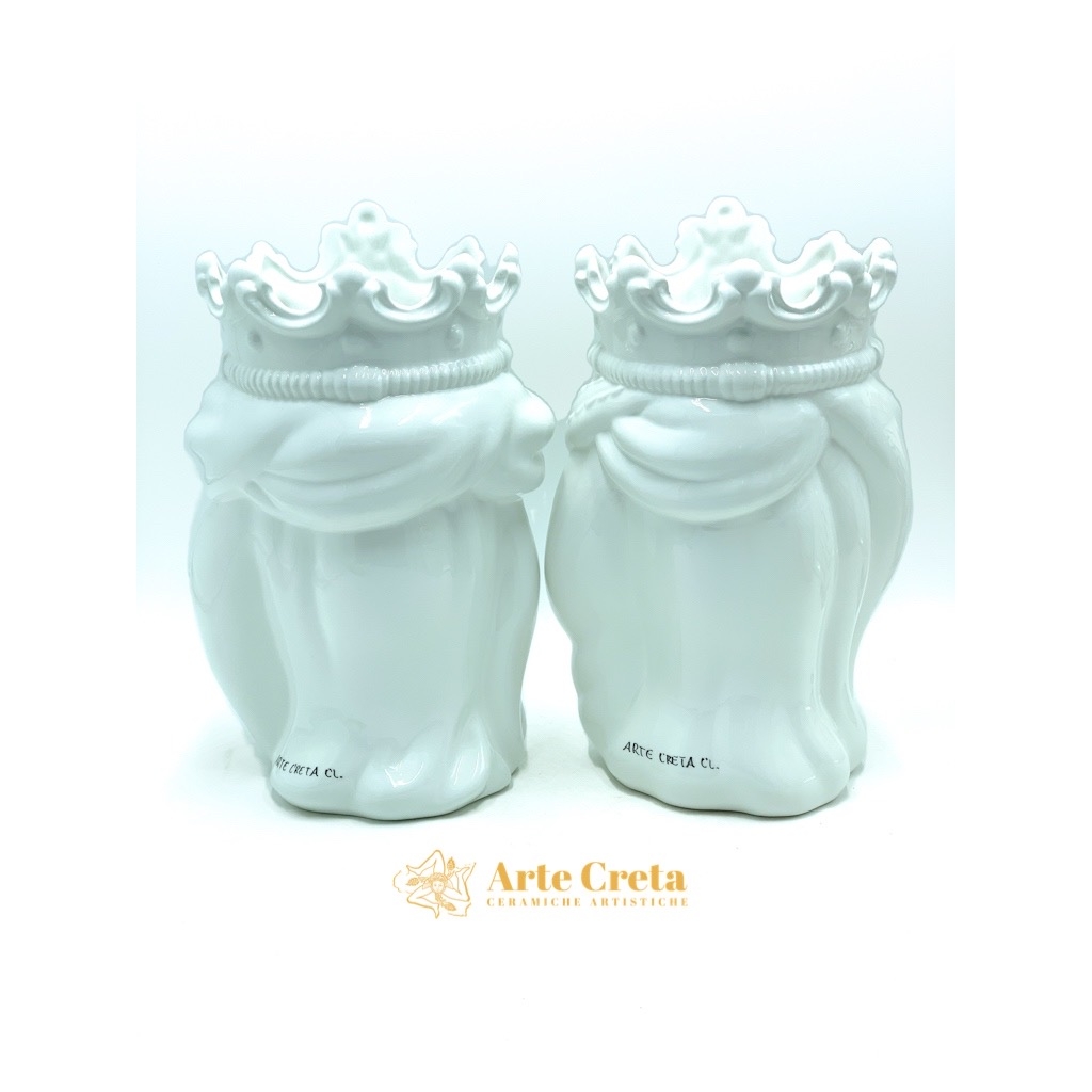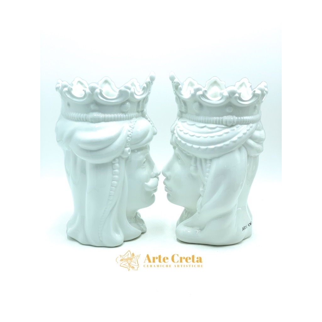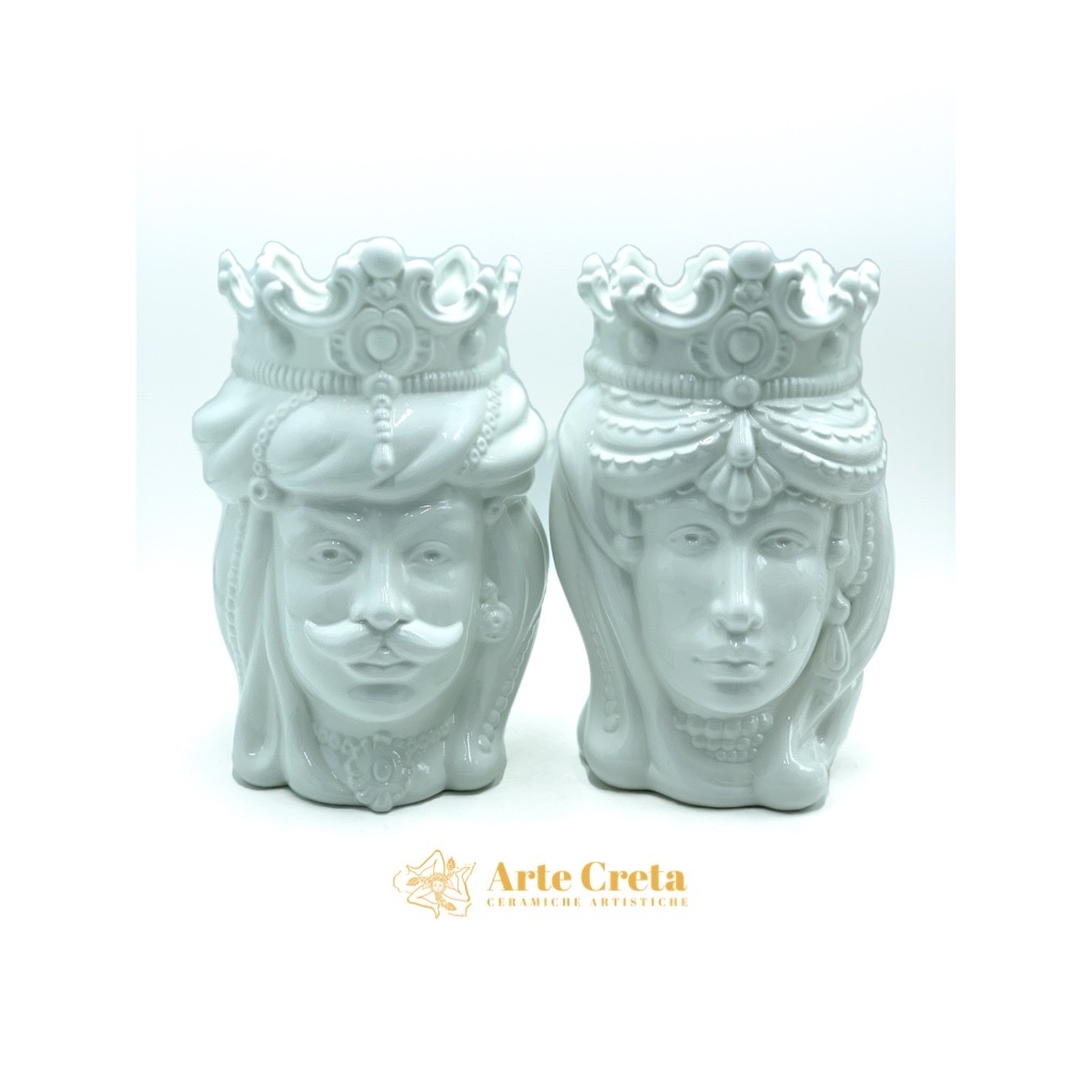 Coppia Testa di Moro Normanno Bianco cm.30. Ceramiche realizzate a mano, in maniera del tutto artigianale, da Arte Creta – Ceramiche Artistiche Siciliane – Caltanissetta, Sicilia.