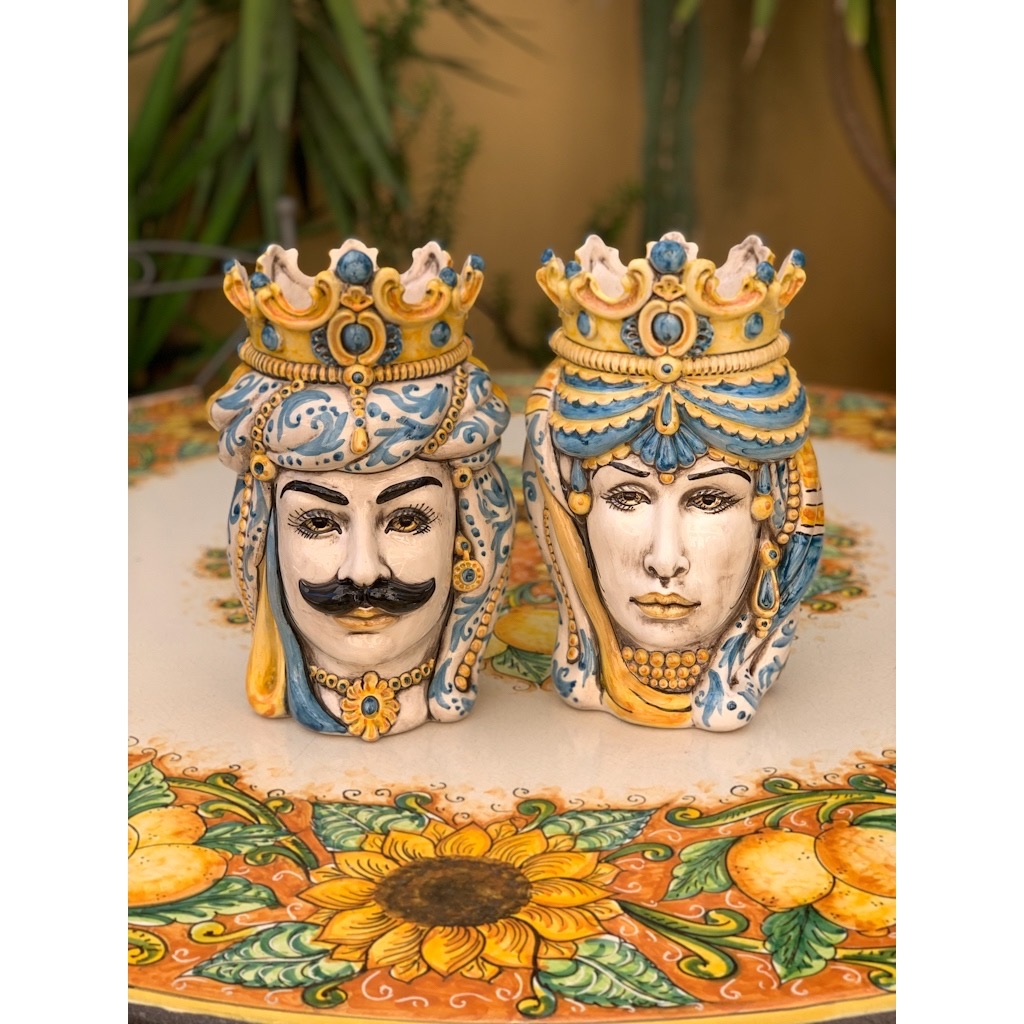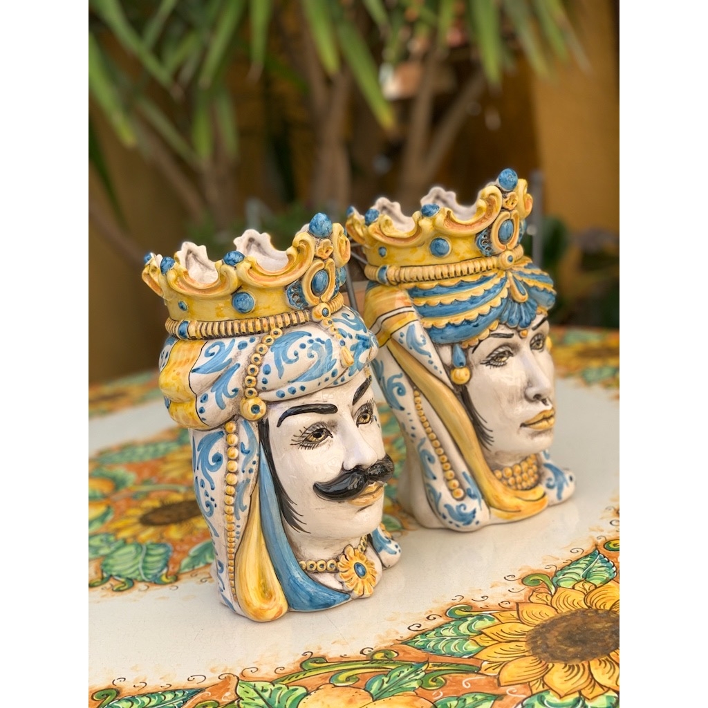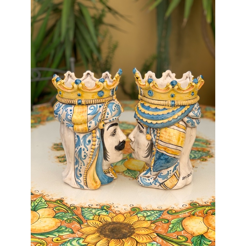Coppia Testa di Moro Normanno blu cm.30. Ceramiche realizzate a mano, in maniera del tutto artigianale, da Arte Creta – Ceramiche Artistiche Siciliane – Caltanissetta, Sicilia.