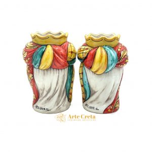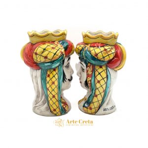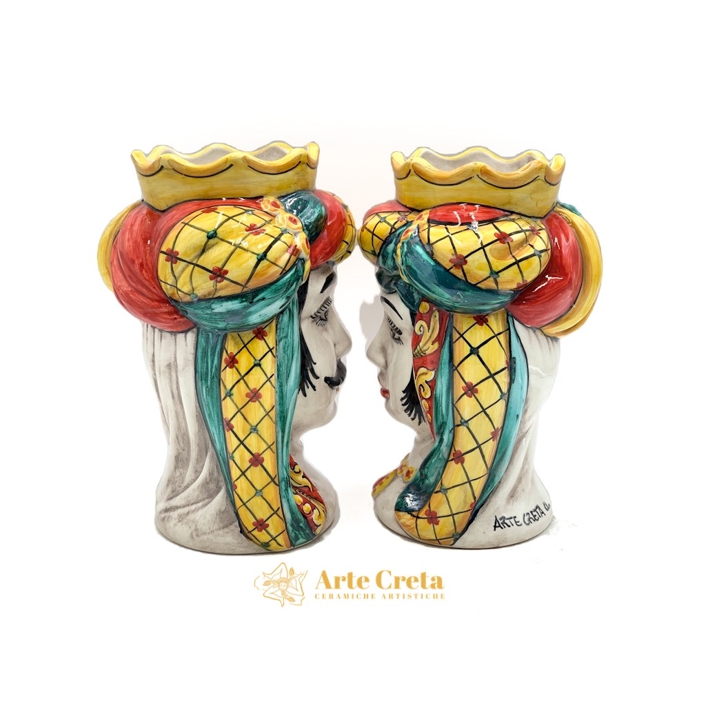 Coppia Testa di Moro Turbante Decoro Ricco Verde e Rosso cm.26. Ceramiche realizzate a mano, in maniera del tutto artigianale, da Arte Creta – Ceramiche Artistiche Siciliane – Caltanissetta, Sicilia.