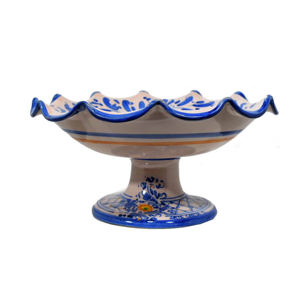 Fruttiera con piede cm 19 (h) – ø cm 37. Ceramiche realizzate a mano, in maniera del tutto artigianale, da Arte Creta – Ceramiche Artistiche Siciliane – Caltanissetta, Sicilia.