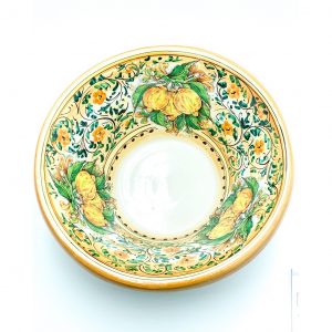 Lemmo Siciliano (Ciotola) Decoro 3 Limoni ø33 h.13 cm. Ceramiche realizzate a mano, in maniera del tutto artigianale, da Arte Creta – Ceramiche Artistiche Siciliane – Caltanissetta, Sicilia.