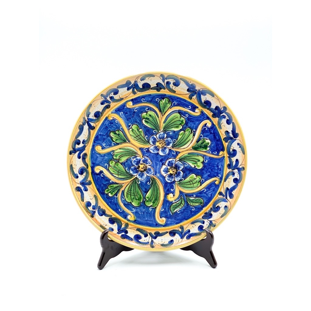 Piatto ceramica decoro fiori blu ø31 cm. Ceramiche realizzate a mano, in maniera del tutto artigianale, da Arte Creta – Ceramiche Artistiche Siciliane – Caltanissetta, Sicilia.