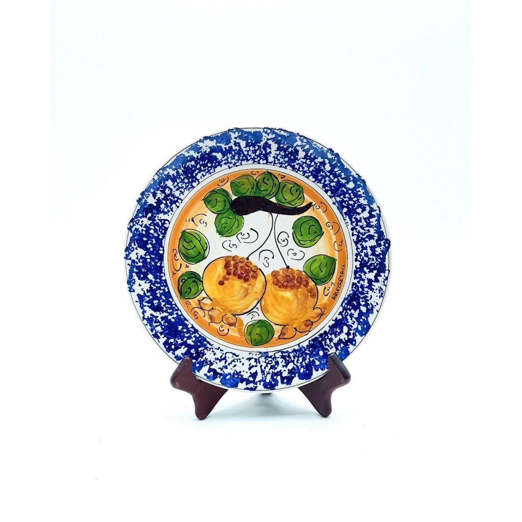 Piatto ceramica decoro melograno bordo blu ø25 cm