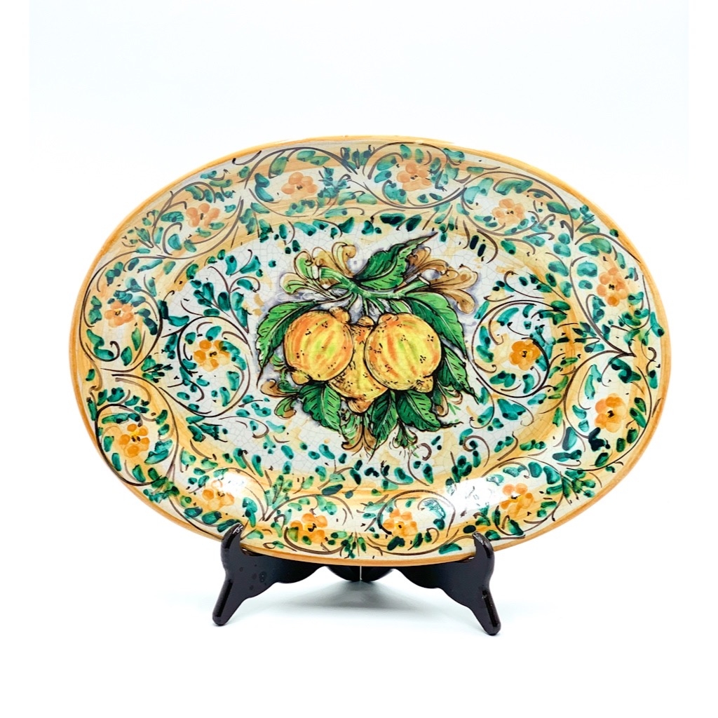 Piatto Ovale Decoro 3 Limoni cm.41×30. Ceramiche realizzate a mano, in maniera del tutto artigianale, da Arte Creta – Ceramiche Artistiche Siciliane – Caltanissetta, Sicilia.