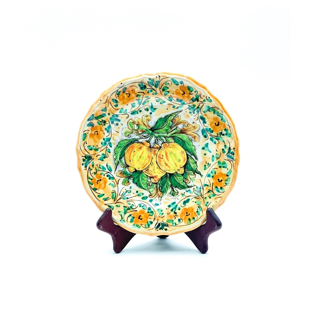 Piatto Smerlato Decoro 3 Limoni ø 22 cm. Ceramiche realizzate a mano, in maniera del tutto artigianale, da Arte Creta – Ceramiche Artistiche Siciliane – Caltanissetta, Sicilia.