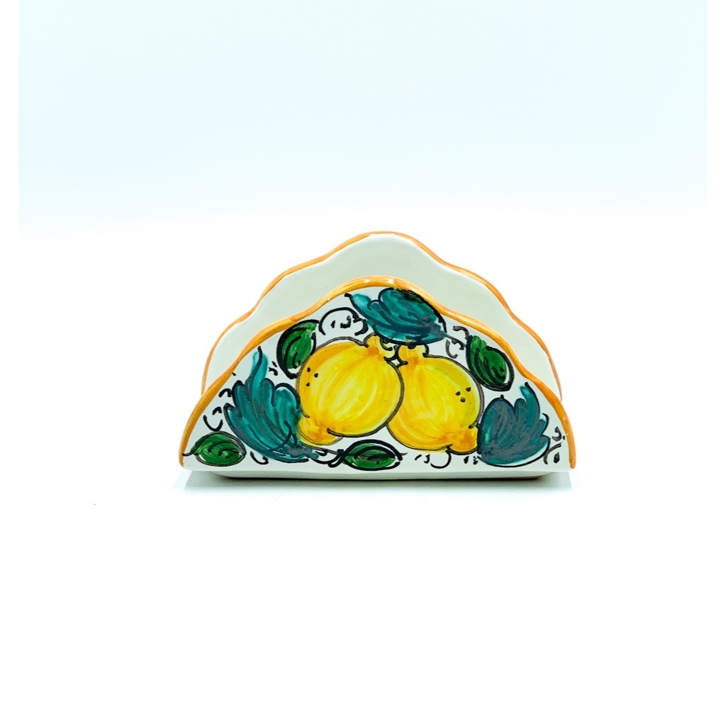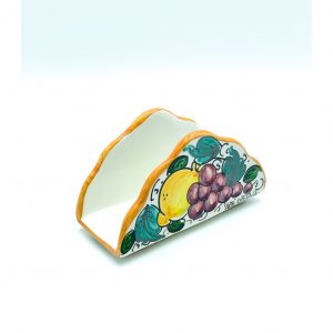 Porta Tovaglioli a Nuvoletta decoro Uva Limoni Melograni cm.15×7 h.9 cm. Ceramiche realizzate a mano, in maniera del tutto artigianale, da Arte Creta – Ceramiche Artistiche Siciliane – Caltanissetta, Sicilia.