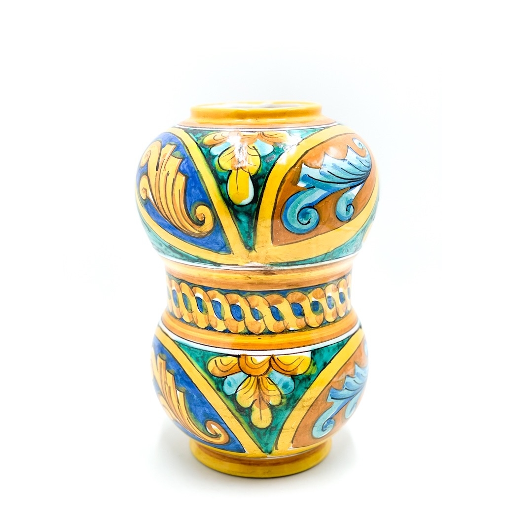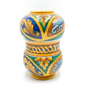Portafiore bombato decoro verde bordò e blu h.30 cm. Ceramiche realizzate a mano, in maniera del tutto artigianale, da Arte Creta – Ceramiche Artistiche Siciliane – Caltanissetta, Sicilia.