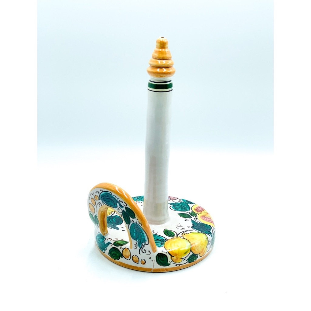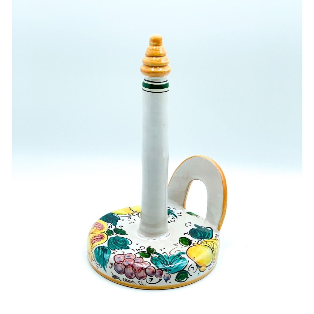 Portarotolo Carta Decoro Uva Limoni Melograni ø18 h.30 cm. Ceramiche realizzate a mano, in maniera del tutto artigianale, da Arte Creta – Ceramiche Artistiche Siciliane – Caltanissetta, Sicilia.
