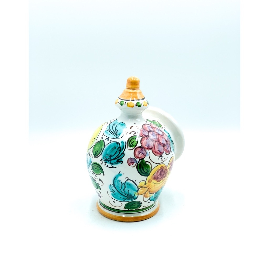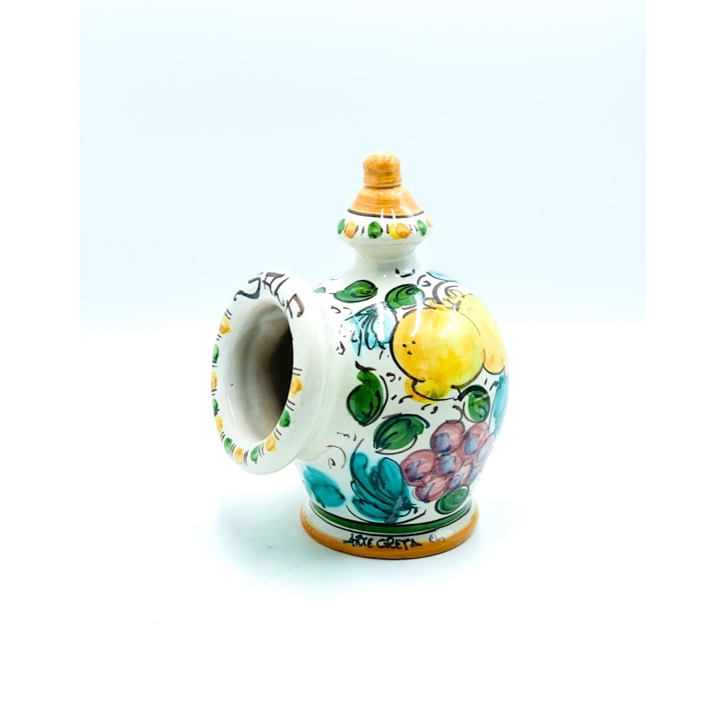 Portasale decoro Uva Limoni Melograni h.22 cm. Ceramiche realizzate a mano, in maniera del tutto artigianale, da Arte Creta – Ceramiche Artistiche Siciliane – Caltanissetta, Sicilia.