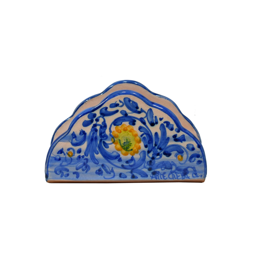 Portatovaglioli a nuvoletta cm 9 (h) x cm 14. Ceramiche realizzate a mano, in maniera del tutto artigianale, da Arte Creta – Ceramiche Artistiche Siciliane – Caltanissetta, Sicilia.