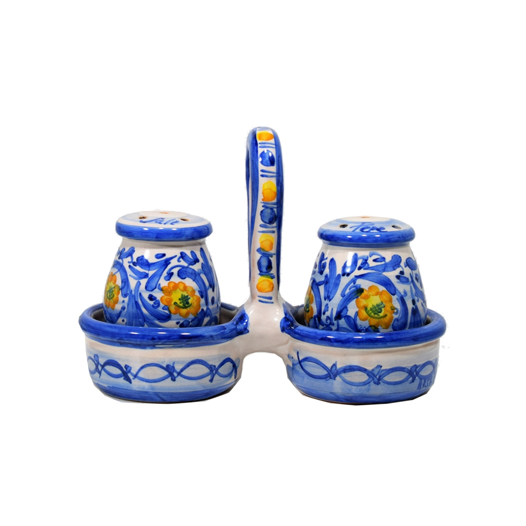 Sale e pepe a cestello 16 cm (h) x cm 12. Ceramiche realizzate a mano, in maniera del tutto artigianale, da Arte Creta – Ceramiche Artistiche Siciliane – Caltanissetta, Sicilia.