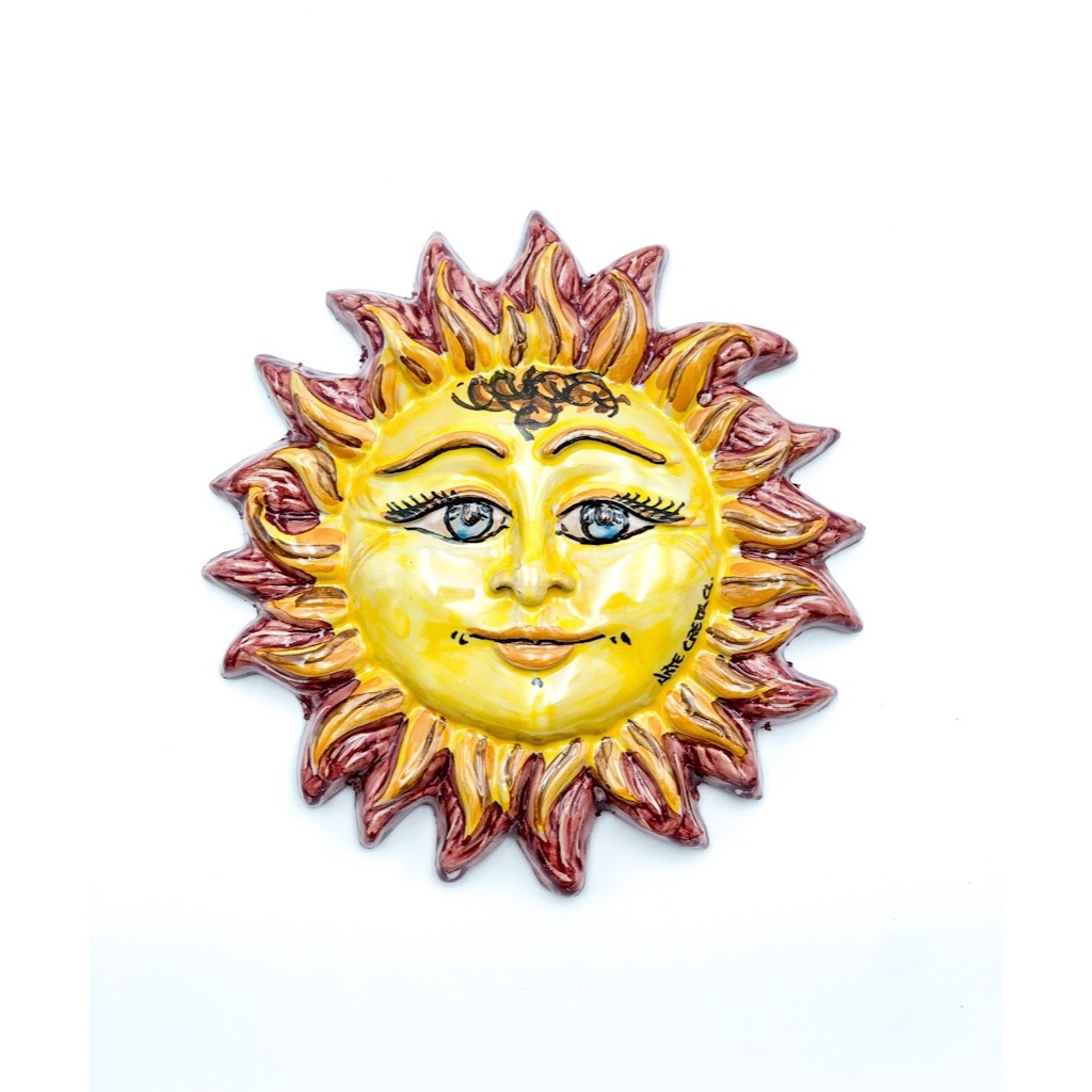 Sole Ceramica Raggi Fuoco decoro rosso diametro 17 cm. Ceramiche realizzate a mano, in maniera del tutto artigianale, da Arte Creta – Ceramiche Artistiche Siciliane – Caltanissetta, Sicilia.