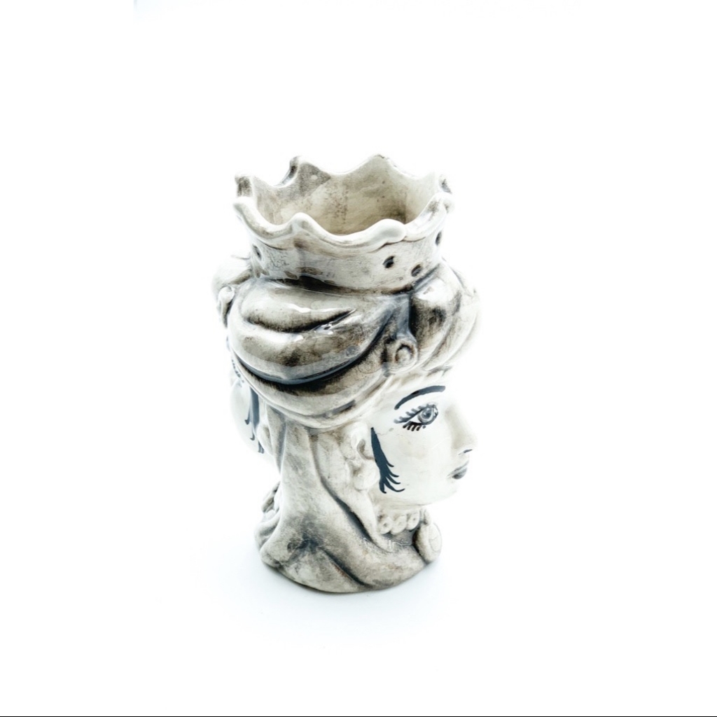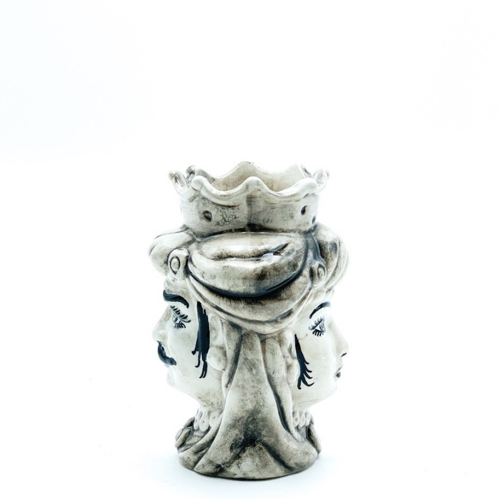 Testa di Moro Doppia Faccia fumè cm.14. Ceramiche realizzate a mano, in maniera del tutto artigianale, da Arte Creta – Ceramiche Artistiche Siciliane – Caltanissetta, Sicilia.